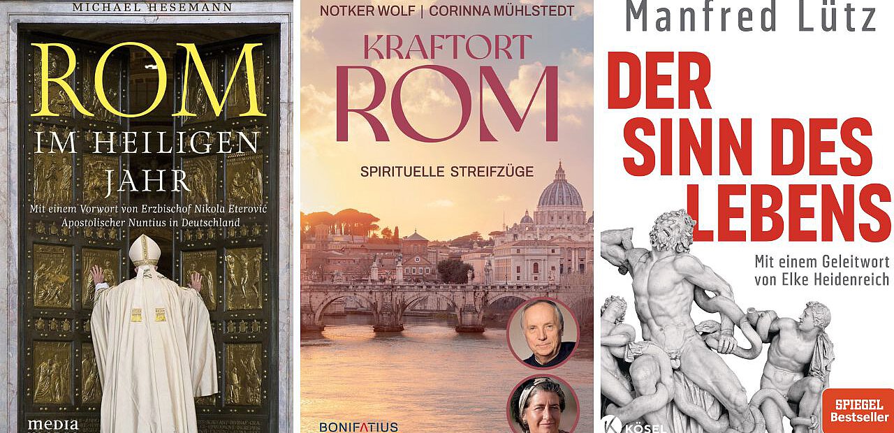 Auch wer meint, alles in Rom schon gesehen zu haben, wird bei dieser spirituellen Reise von Notker Wolf (verstorben am 2. April 2024) und Corinna Mühlstedt durch die Ewige Stadt fündig. Michael Hesemann präsentiert die Tradition der Heiligen Jahre, die vier Papstbasiliken mit ihren Heiligen Pforten, die sieben Pilgerkirchen und die 40 römischen Gotteshäuser und Katakomben, die nicht nur 2025 eine Rolle spielen. In dem Buch „Der Sinn des Lebens“ spannt der Arzt, Psychiater, Theologe und Bestsellerautor Manfred Lütz einen Bogen von der Darstellung der römischen Wölfin, die Romulus und Remus säugt, bis hin zu den Kunstwerken des Argentiniers Alejandro Marmo, die Papst Franziskus in den Vatikanischen Gärten hat aufstellen lassen.