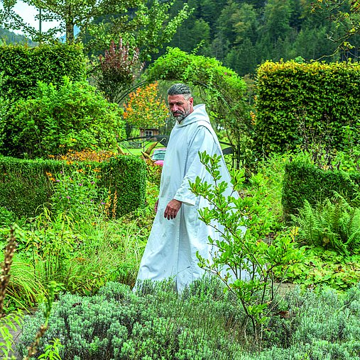 Zunächst im Alltag: Da haben wir die 12 Stunden Essenspause zwischen Abendessen (18 Uhr) und Frühstück (6 Uhr). Das steht schon in unserer Regel seit 1.500 Jahren. Dann gibt es einmal pro Woche eine Reduktion: Von Freitag auf Samstag essen wir nur eine Suppe. Zweimal im Jahr faste ich eine Woche – im Frühjahr und im Herbst – nach der F.-X.-Mayr-Methode. Das ist eigentlich eine Kauschule. Wir essen zwei trockene Dinkelweckerl am Tag, die man sehr lange kaut, und trinken viel Tee und Wasser – drei bis fünf Liter. Die Tees sind organspezifisch abgestimmt: Leber, Galle, Harnblase, Herz-Kreislauf, etc. Es ist ein intensives Durchreinigen des ganzen Organismus.