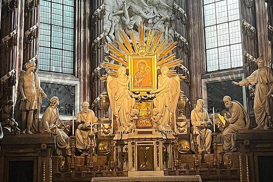 Der Pilgerweg führt einen unter anderem nach Wiener Neustadt, Lanzenkirchen oder Schwarzau am Steinfeld. Auf der Wanderung kommt man auch in der Kirche von Bad Erlach vorbei. Dort kann man eine ganz besondere Marienstatue sehen: Maria lächelt. Und da Lächeln ansteckend ist, geht man selbst mit einem Schmunzeln weiter.