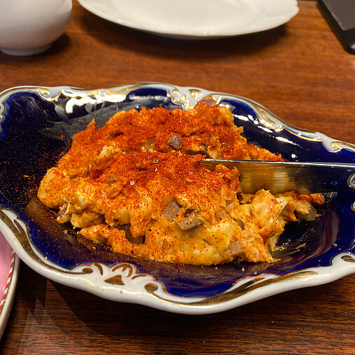 Die geborene Fränkin ist angeliebte Wienerin und hat bei der Jause einen Obatzten kredenzt. Die üppige Käsespezialität schmeckt ganzjährig, passt aber sehr gut als Grundlage vor einer langen Ballnacht oder, wie Julia Schnizlein meint, zum Katerfrühstück.