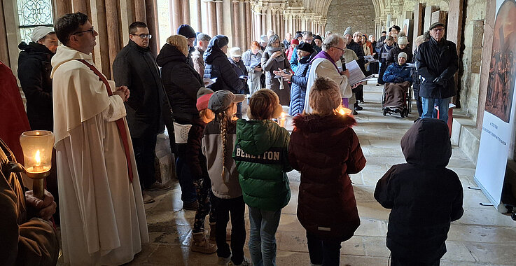 „Geh weiter, egal was geschieht. Leb weiter, egal was dich (be-)hindert. Lieb weiter, egal wer sich entgegenstellt, denn Kreuz und Grab sind nicht das Ende, sondern Durchbruch zum Jubel über die Heilstat des Herrn“: Dies beteten über 50 Besucherinnen und Besucher – darunter Gehörlose und Rollstuhlfahrerinnen und -fahrer – trotz Temperatursturzes und Kälte am Ende des traditionellen barrierefreien Simon-von-Cyrene-Kreuzwegs in Stift Heiligenkreuz. Der besondere Kreuzweg am 27. März, zu dem die Katholische Männerbewegung Heiligenkreuz eingeladen hatte, stand unter der Leitung von Pfarrer Bernhard Mucha und dem Heiligenkreuzer Abt Maximilian Heim.